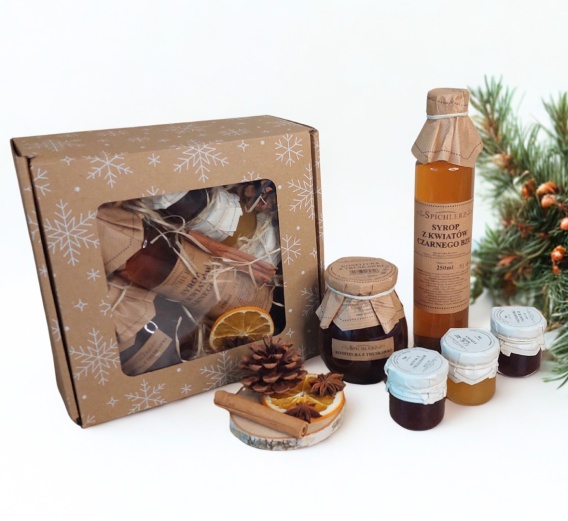 Wyjątkowy świąteczny zestaw dla miłośników natury i domowych smaków. Konfitury, miód i syrop z kwiatów czarnego bzu w pięknym opakowaniu to idealny upominek, który wprowadzi ciepło i słodycz do zimowych dni.